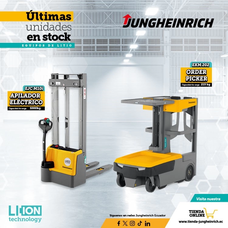 La tienda online de Jungheinrich Ecuador le ofrece un rango de productos de movimiento de carga, tales como transpaletas manuales, transpaletas eléctricas, transpaletas galvanizadas y apiladores eléctricos tanto para empresas como clientes particulares, a través de nuestro canal de e-commerce con disponibilidad inmediata.